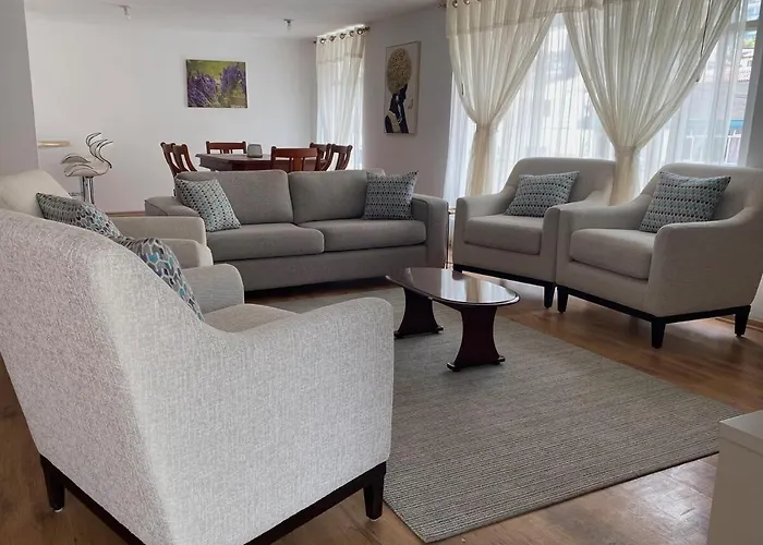 Com vista para o jardim, o apartamento Departamento 4 Dormitorios, 6 Camas, 9 Personas, Con 2 Balcones, Wifi Y 1 Parqueadero Gratis Quito fica a uma distância de 10 minutos de carro de Museu Guayasamin em Quito. Graças a luxos como pátio e área para piquenique, a melhor experiência de relaxamento é garantida.